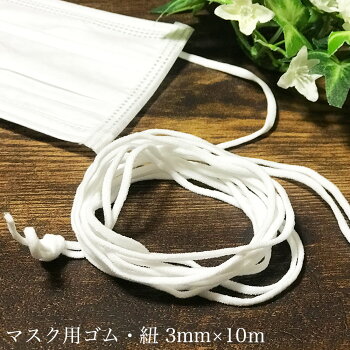 即日発送 即納 マスク用ゴム 3mm×10mカット マスク用紐 在庫あり マスクゴムマスクひも やわらかウーリースピン 楕円タイプ 即日 白 ホワイト 手作りマスク ハンドメイド 伸縮性 耳が痛くない あす楽 ゆうパケット